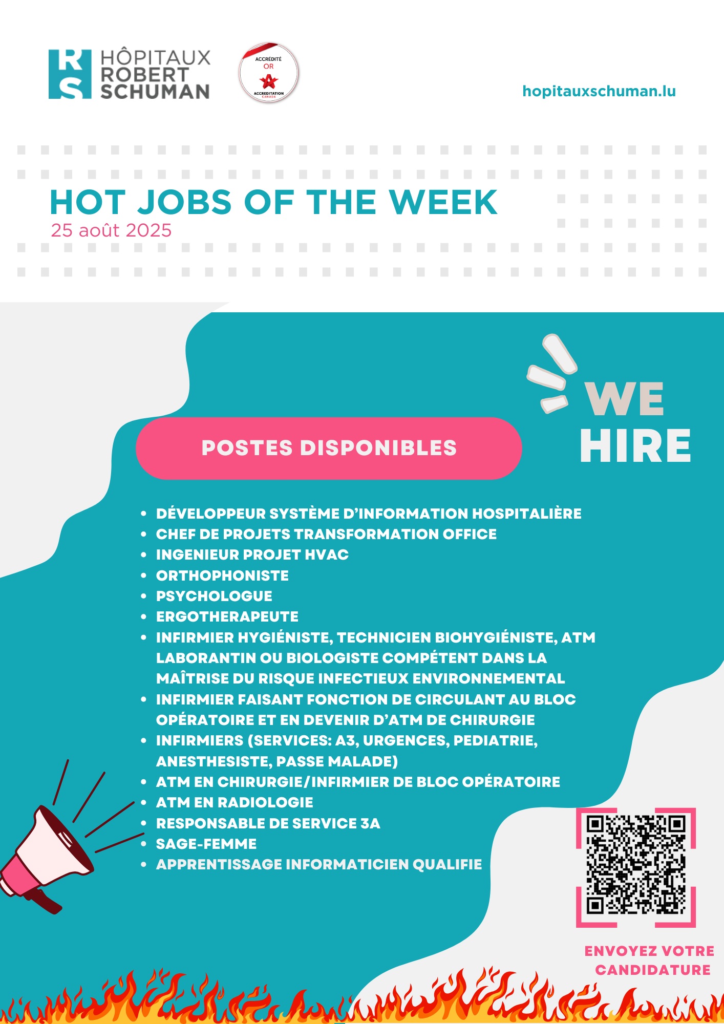 Lesen Sie die ausführlichen Stellenbeschreibungen und bewerben Sie sich jetzt gleich auf unserer Website: https://www.hopitauxschuman.lu/fr/nos-offres-demploi