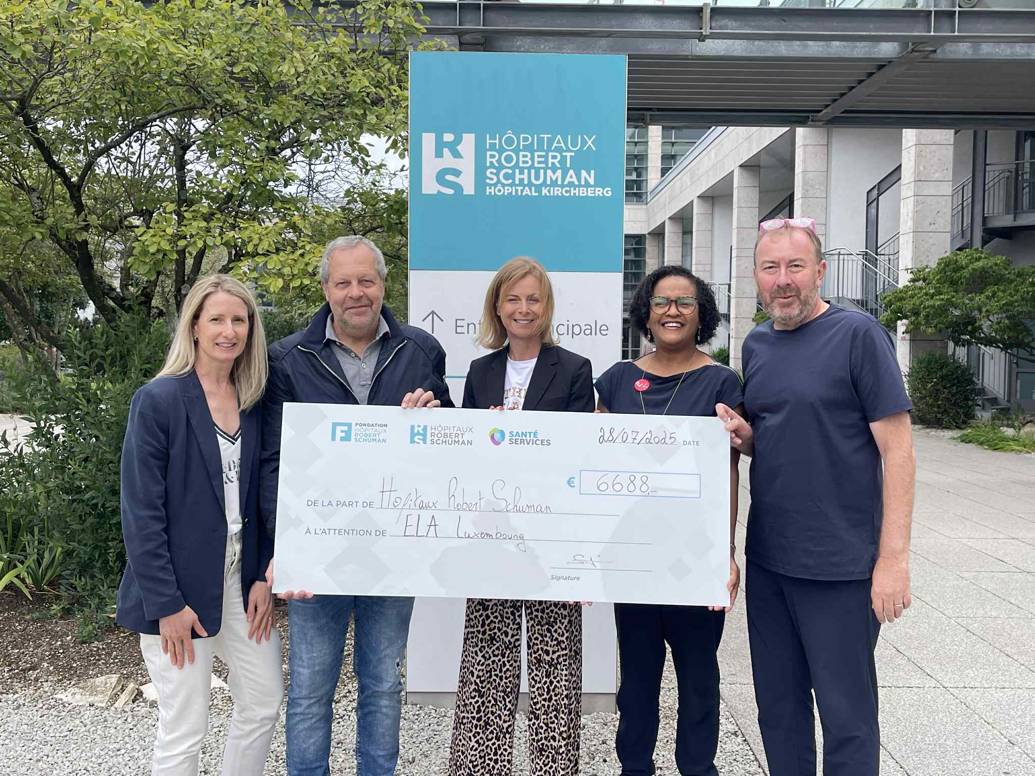 Am 1. Juli haben sich die Mitarbeiter der Hôpitaux Robert Schuman anlässlich der Veranstaltung „Schlüpf in deine Turnschuhe im Unternehmen“ engagiert. Durch ihren Einsatz konnten 6.688 € zugunsten von ELA Luxembourg asbl gesammelt werden, einer Vereinigung, die Familien unterstützt, die von Leukodystrophie betroffen sind.